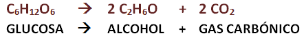 Sabemos que todas las bebidas alcohólicas se originan mediante un proceso de fermentación de los azúcares contenidos en ellas. Pensemos en el mosto original: para la transformación en vino intervienen levaduras (hongos ascomicetos) que están tanto en los suelos de los viñedos como en la pruina o cera que rodea la piel de la uva. Estas levaduras se mezclaran con el mosto y comenzarán a multiplicarse rápidamente, alimentándose de la glucosa contenida en él. Ésta sería la reacción correspondiente: