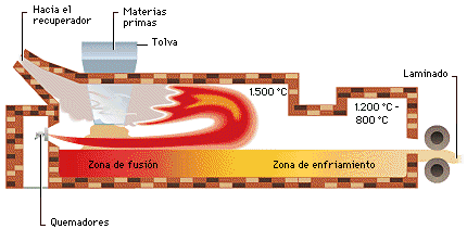 - Reacción de las materias primas y formación del vidrio.