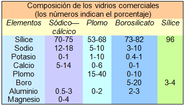 - La tabla de tipos de vidrios está tomada de bibliotecadigital.ilce.edu.mx