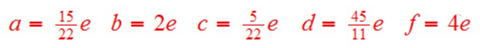 Finalmente damos un valor numérico cualquiera a e. En este caso conviene que sea e = 22 porque de ese modo haremos desaparecer todas las fracciones: