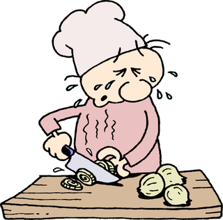 ¿Por qué lloramos cuando cortamos cebolla? También provocamos reacciones cuando cortamos. Un ejemplo muy simple es el de la cebolla que nos hace llorar cuando la cortamos. Lo que estamos haciendo sin darnos cuenta al cortar una cebolla, es que mezclamos una enzima y una proteína que combinadas provocan un compuesto con un olor característico y hace que ataque a las glándulas lágrimas. Al ser soluble al agua, si mojamos con agua el cuchillo en que cortamos, evitaremos llorar.